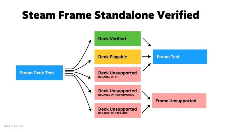 The company says games that are ‘Verified’ or ‘Playable’ on Steam Deck are automatically tested for the Frame Verified badge, as seen in the flow chart above. Games that aren’t supported on Deck due to performance or lack of compatibility with SteamOS won’t be considered.