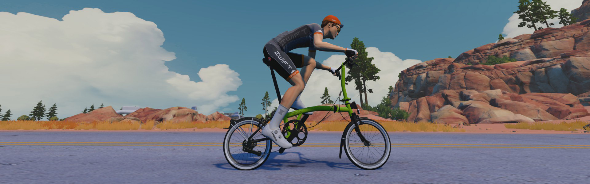 I put all that on and hustled upstairs, turning on my Zwift computer while my sainted wife filled a couple of bidons and grabbed me a sweat towel. Seven minutes to go. Pull on the shoes.Climb on the bike.