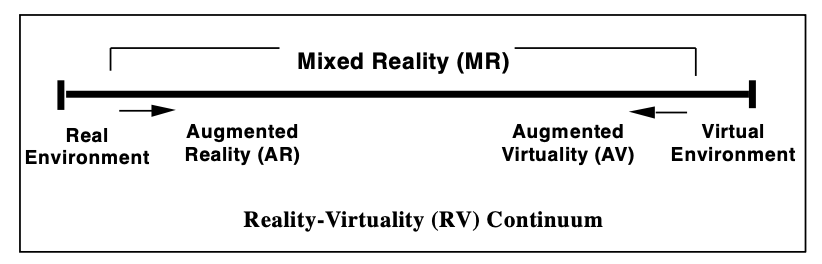 Imagine two types of eyewear at opposite ends of this particular continuum from Paul Milgram’s seminal 1994 paper. One at the right is a relatively heavy VR headset that is essentially all display. The other at left is a pair of ultra lightweight frames with no display. Today Meta ships Quest 3, 3S, and Ray-Ban glasses in each of these categories, and they all lack eye tracking.