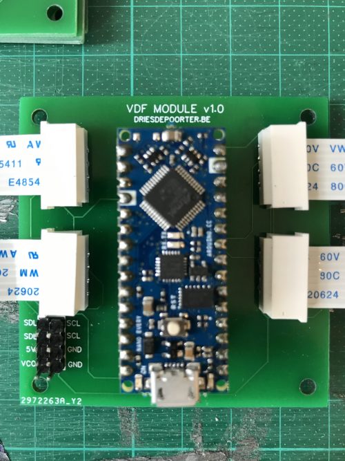 The big screens are connected with the I2C protocol to the Arduino, and the Arduino is connected serial with the second Raspberry Pi. Dries also made a custom printed circuit board (PCB) so the build looks cleaner.