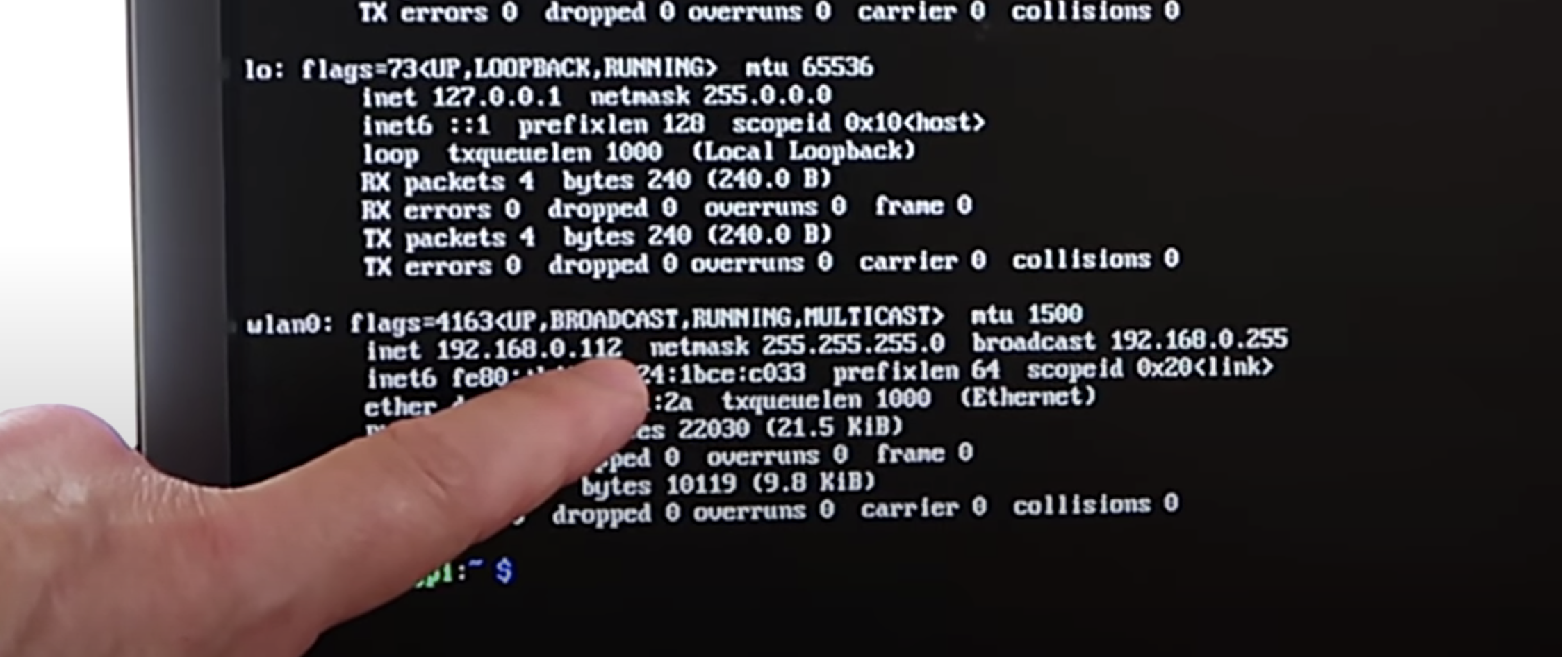 You can see this in action at this exact point in the video. You’ll see the LED blink fast once, then leave a gap, blink fast once again, then leave a gap, then blink fast twice. That means the device’s IP address ends in 112.