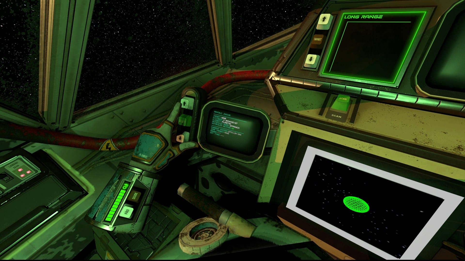 This revelation negates the need to constantly pick up and switch controllers. Playing this way actually increases my immersion because it feels so seamless and natural to take my hands off the throttle and stick, then reach forward to interact with the cockpit’s dashboard. This method isn’t perfect by any means, but it shows how amazing it could feel to have native hand tracking built into the game, so I implore First Time Games to consider this as a potential next step in the evolution of Inter Solar 83’s controls.
