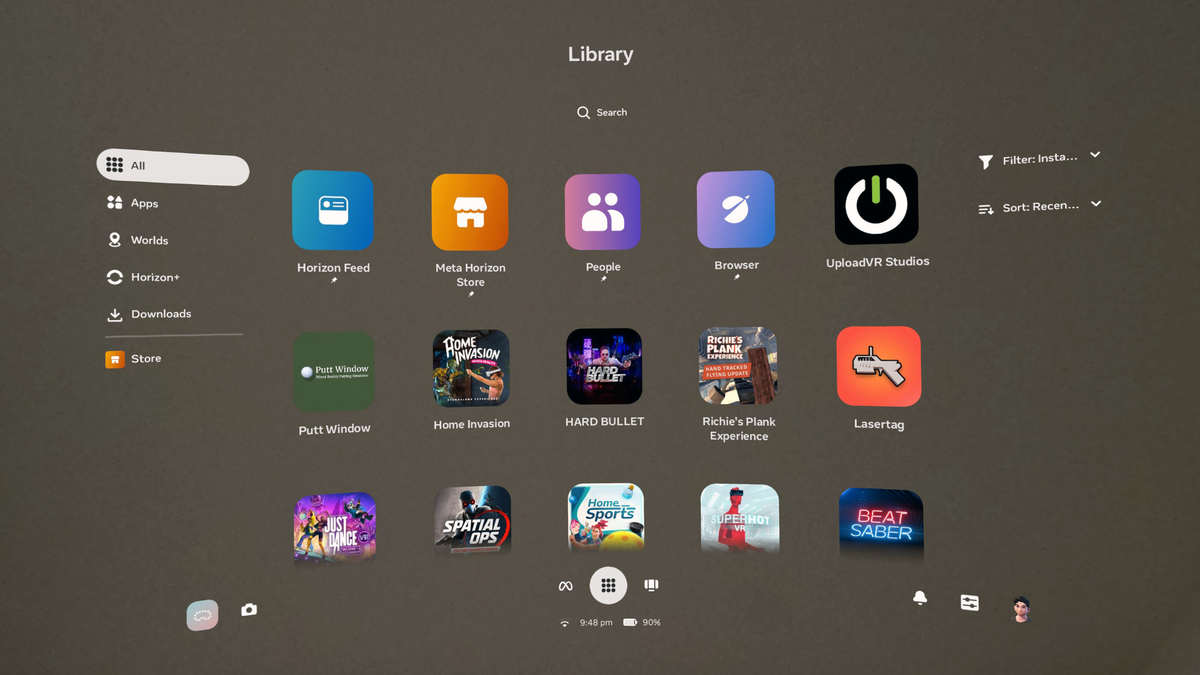 The evolved Navigator has a new Worlds tab for Horizon Worlds destinations, and you’ll no longer see worlds in your app Library at all. Speaking of the Library, it now features interleaving offset rows, similar to Apple’s visionOS.