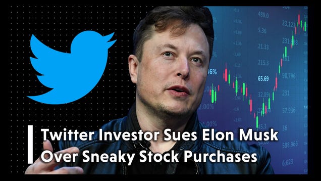 Twitter Investor Sues Elon Musk Over Sneaky Stock Purchases Posted on April 13, 2022 by Xordac Prime Read more… Source: Gizmodo – Twitter Investor Sues Elon Musk Over Sneaky Stock Purchases