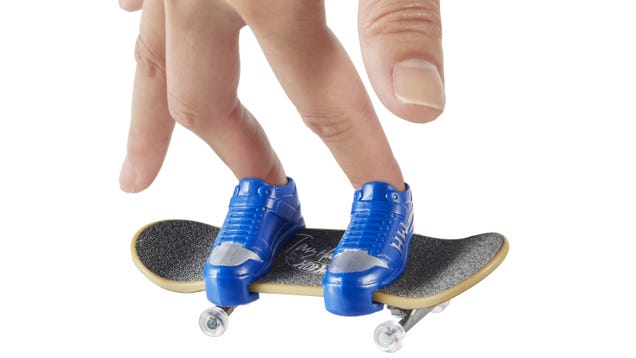 If you plan to take on a toy line with an established brand that’s been around for almost 25 years, you need to bring something new to the playroom. For Hot Wheels, hoping to take on Tech Deck’s miniature skateboards, that involves partnering with Tony Hawk and introducing tiny finger-worn skate shoes. Sorry, what?