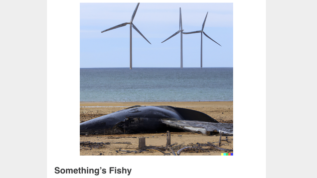 Readers of the daily email newsletter of one of the country’s leading right-wing, fossil fuel-funded think tanks were treated to a bizarre sight this week: an AI-generated image of a dead whale washed ashore on a beach in front of wind turbines, above a fearmongering story about offshore wind. Unfortunately, what is…