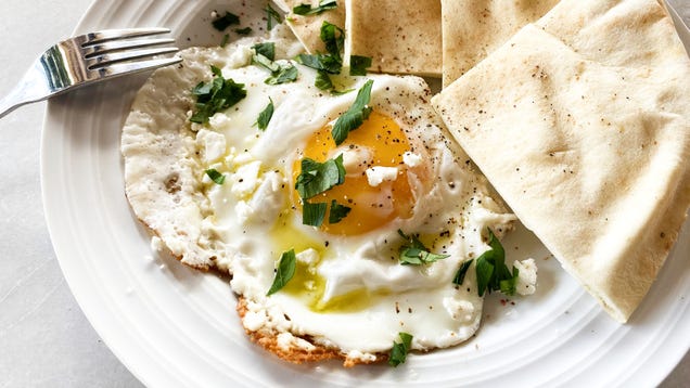 Source: LifeHacker – Fry Your Eggs in a Pile of Crumbled Feta