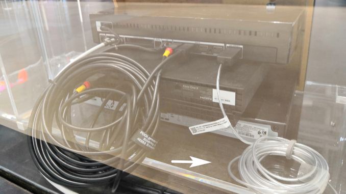 I still can’t get over how thin this cable is. It’s as thin as my 65W charger cable for my laptop. And Samsung offers the cable in both 5m and 15m lengths (~16.5ft and ~50ft), so it’s not a short-run cable either. I asked why it wasn’t a standard across everything, and the reason is because of the high cost. Not the cost of the cable, mind you, but rather the extra hardware that goes into the device before the TV, and into the TV itself. I tried to take a picture of the back of the TV, but it didn’t come out well. This is the danger of having a Perspex booth to demonstrate the technology.
