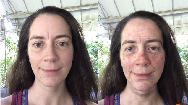 Sunscreen isn’t just for preventing sunburns. The sun’s rays are responsible for much of the wrinkling, thickening, and brownish spots that show up over time, especially on light skin. Fortunately, a good broad-spectrum sunscreen will protect you, and this app simulates exactly how much.