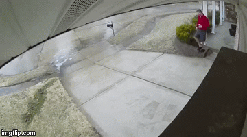 Keep going for the whole video, complete with painful aftermath. He doesn’t even bother checking the mail.