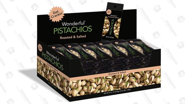 Pistachios, in my humble opinion, are the best snack, because shelling them slows you down just enough to force you to really savor them. The problem is that I can’t stop eating them. That’s what makes these individual serving packs so great—just grab one on the way to work—and you can get 24 delivered by Amazon for…