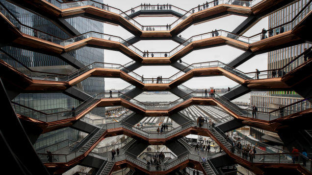New York City’s newest luxury neighborhood, Hudson Yards, officially opened on Friday and visitors are already scrambling to photograph or mock its gilded pinecone landmark structure dubbed the Vessel.