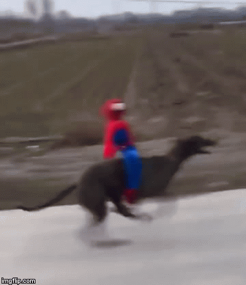This is a short and sweet video of Spider-Man riding a greyhound that’s absolutely booking it down a rural country road. So is this how Spidey really gets around the city so fast? You know many moons ago I used to have an ex-racing greyhound. His name was Swift, and he was. I used to take him to this huge open field and just let him rip. My other dog at the time (Chloe) knew she wasn’t fast enough to keep up with him so she’d lie in wait and try to ambush him as he sped by. Hey God, if you’re listening, give them some extra scratches right behind the ears today, tell them they’re from me. “They know.” Thanks.