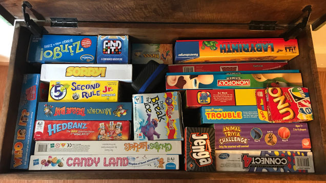 My daughter has some stacking shelves in her bedroom closet where she keeps her board games. I put them up because they’re better than my previous organization method of nothing, but I’m quickly realizing they are less than ideal. If she tries to grab, say, Hoot Owl Hoot, and it’s at the bottom of one of the shelves,…