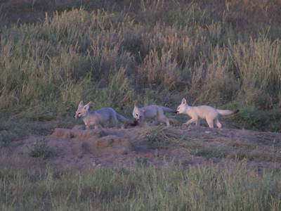 Our photo of the day features a mother kit fox and two pups at play.