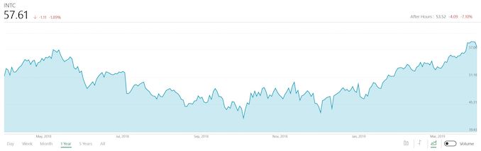 Looking ahead to Q2, Intel is forecasting revenue of approximately $15.6 billion, with an operating margin of 27%, and the FY 2019 forecast is for approximately $69 billion in revenue, with an operating margin of 30%.