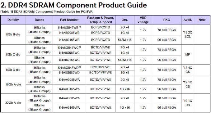 Samsung will continue to produce C-die and D-die 8 Gb memory chips using its 10 nm-class process technologies. Officially rated for DDR4-3200 and DDR4-3600 speed bins, these ICs have been in production since 2016 and 2017 respectively. By now, these memory devices have to be mature enough for high-end memory modules, but far not all makers of DIMMs use them for leading-edge products. Also their overclockability beyond those speeds pales in comparison to B-die.