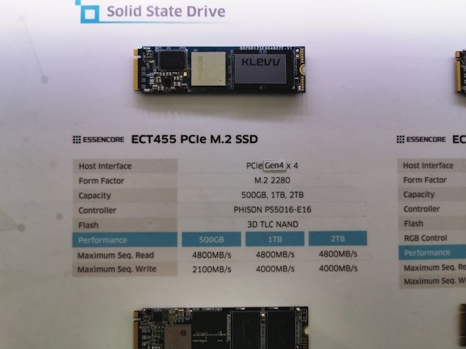 The Phison E16 controller is built to use either Toshiba NAND flash, Micron NAND flash, or SK Hynix NAND flash. All the designs we saw at Computex used one of the first two – no-one was willing to commit to SK Hynix NAND at this point. However, given that Essencore is a family brand of SK Hynix, it doesn’t take much to put two and two together. Given the specifications at the booth, it would appear that the Hynix NAND is still easily sufficient to hit the 4.8 GB/s limit of the E16 controller.