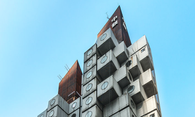This is Nakagin Capsule Tower. Built in 1972, it was designed by architect Kisho Kurokawa and a prime example of the Japanese architectural movement known as Metabolism, in which the concept was to design buildings that organic and not static, making them reminiscent of living beings.