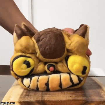 This is a small series of Twitter videos created by Japanese baker izuyo of loaves of bread that look like scary turds on the outside, but slice to reveal very impressive looking cartoon characters on the inside (above, the Catbus from My Neighbor Totoro). I’m into that. You know what I like to see even more when I slice into some bread though? “The cross section of a well made sandwich.” You know what I’m talking about!