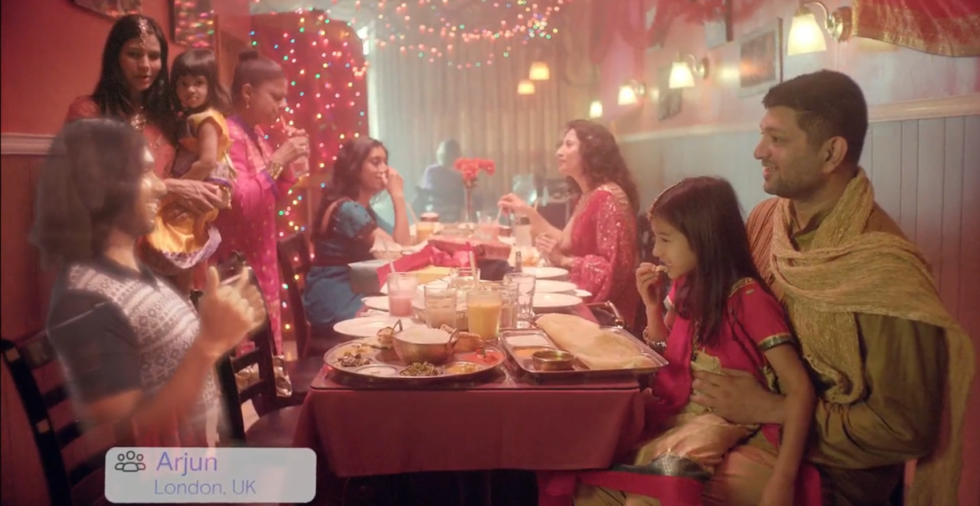 After showing someone awkwardly hold a smartphone up to have a video chat, the demo video transitioned to this: a chat where a distant friend appears in the same room.
