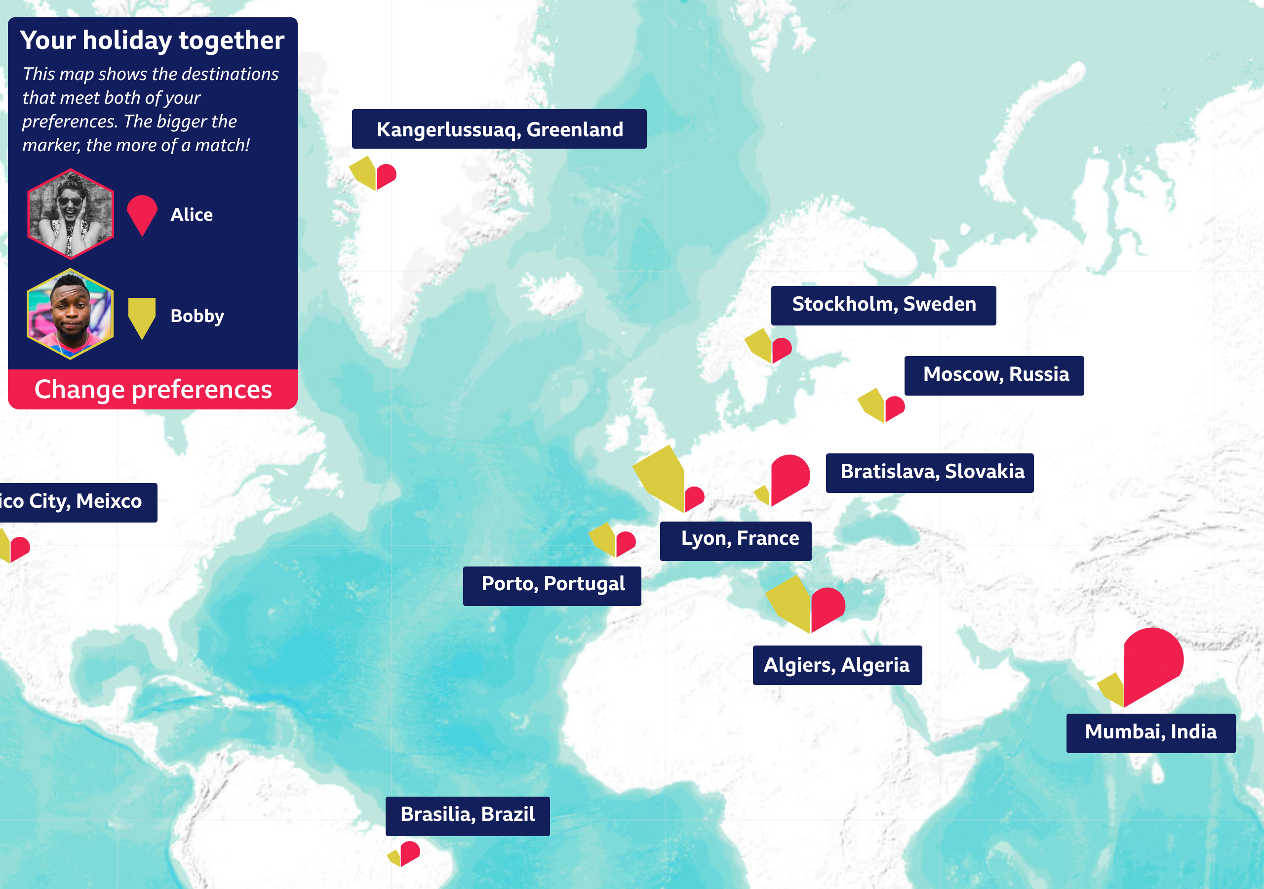 Another application helps two users to plan a holiday together. It takes their individual preferences and shows them the destinations they both want to visit, with information about them brought in from government and commercial sources. The app protects user privacy, because neither user has to reveal places they’d rather not visit to the other user, or the reason why.