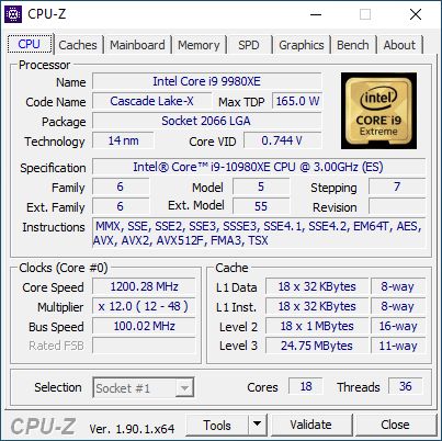 Core i9-10980XE Not Fully Detected in CPU-Z Yet