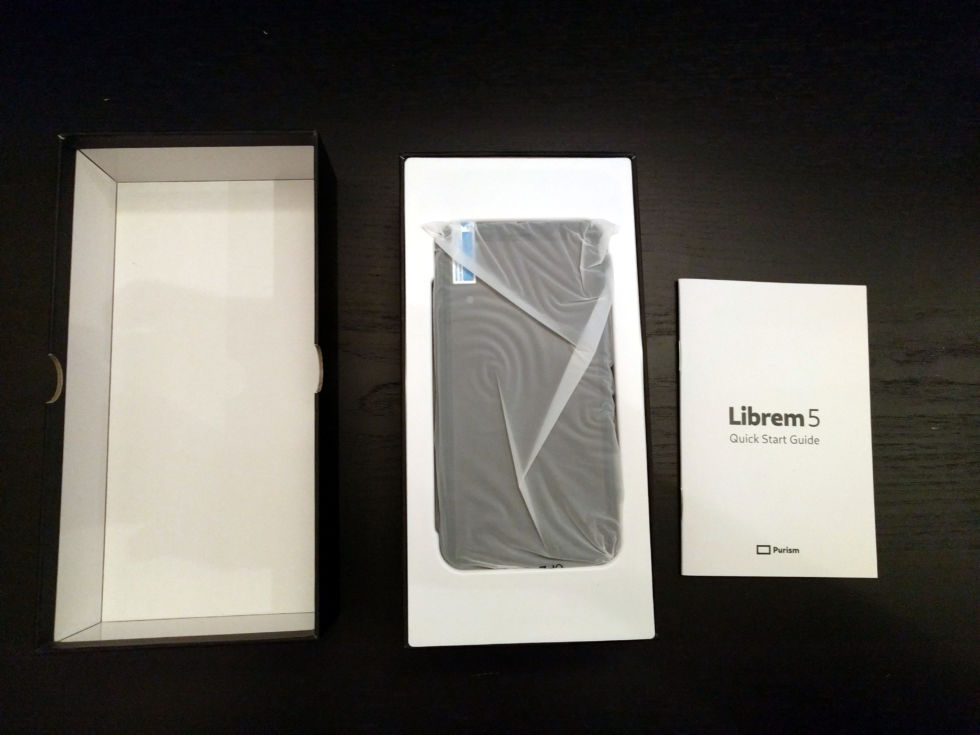 Lifting the lid off the Librem 5’s box, you see the phone and a “getting started” manual. [credit: