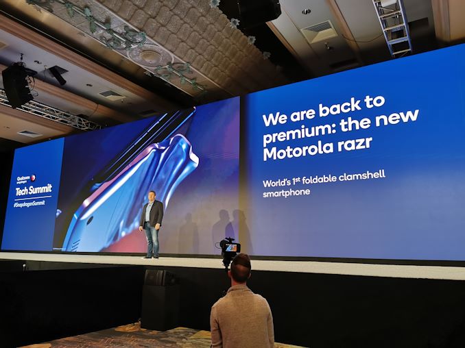 The first guest company to present at Qualcomm’s Snapdragon Tech Summit this year was Motorola. For readers who haven’t been keeping up, Motorola is now owned by Lenovo, and its focus is still very much on the smartphone market. Even recently they announced their first foldable smartphone, a new Motorola Razr – a modern take on the classic clamshell ‘razr’ phone, but this time putting a foldable OLED display on the inside. A number of press and analysts are calling it one of the more ‘sensible’ flexible display technology deployments in the market today, although at $1500 it is still a lot to invest in an old style clamshell device. That being said, Motorola had some words about its future.