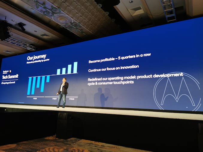 Before the future, the past – as the Motorola Mobility company was split from the Motorola Solutions arm of the business in 2011, it was sold to Google in 2012 and then in 2014 was sold again to Lenovo. On stage, Motorola showed that their 2017/2018 financial results were quite bad, but over 18/19 and 19/20, the Motorola brand is now again profitable. The success of devices like the Z3 flagship down to the budget E5 Play has meant that the company has been profitable for five consecutive quarters, which to be honest I didn’t expect was the case.