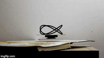 This is a video of a dual axis optical illusion of a rotating Lissajous curve (frequency relation 2:3) transformed into 3D space that appears to rotate around a vertical axis when viewed regularly or when moving your head from side to side, but appears to rotate around a horizontal axis if you move your head up and down. *shrug* I don’t know, I have a headache now.