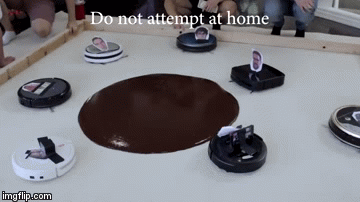 Source: Geekologie – Oh The Humanity: Seven Robot Vacuums Vs 5 Gallons Of Chocolate Pudding