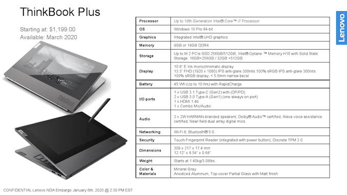 Source: AnandTech – CES 2020: Lenovo’s Dual-Screen ThinkBook Plus w/ Comet Lake