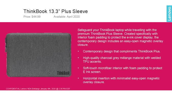 Lenovo says that sales of its ThinkBook Plus will begin in March at prices starting at $1,999. The sleeve and the mouse will be available in April for $44.99 and $39.99, respectively.