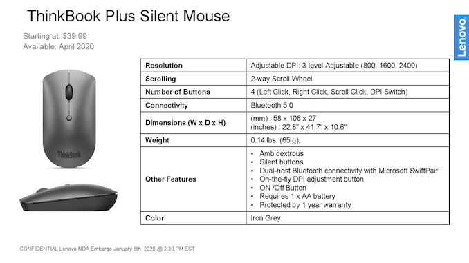 Since the ThinkBook Plus laptop has an auxiliary e-ink display on its top cover, it is natural that this screen needs some extra protection. Because of that, Lenovo will offer a special charcoal grey ThinkBook 13.3-inch Plus Sleeve with soft-touch microfiber interior with foam padding. In addition, Lenovo preps its iron grey ThinkBook Bluetooth Silent Mouse with a 2400 DPI sensor.