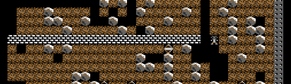 Rockford is quite easy to test for movement, as he can only move onto an empty square – a soil square or a gem square. It’s also possible for him to push a boulder if there’s an empty space on the other side. For the boulders, we need to first test if there’s an empty space below it, and if so, the boulder must move downwards. We also test to see if a boulder is on top of another boulder – if it is, the top boulder can roll off and down onto a space either to the left or the right of the one beneath.