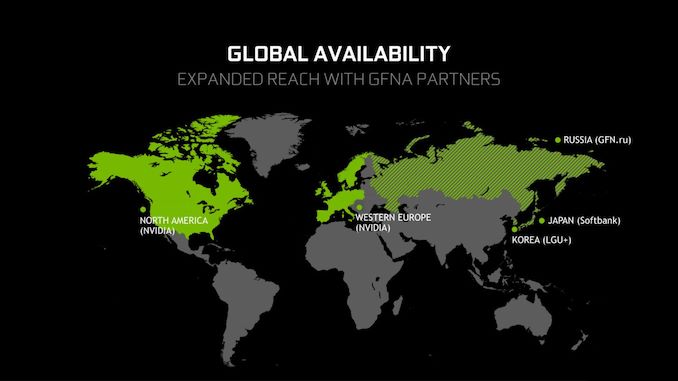 The service availability is also largely unchanged from the beta. NVIDIA is running their own server clusters in North America and Western Europe, with nine sites in North America and six in Europe to try to keep latency down. Meanwhile NVIDIA has partnered with local service providers in Russia, Japan, and South Korea, who are offering their own services using the GeForce NOW technology.