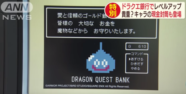 For a country where Dragon Quest is so popular that there are DQ themed convenience stores, ATMs featuring the classic RPG font and the character Slime seem inevitable.