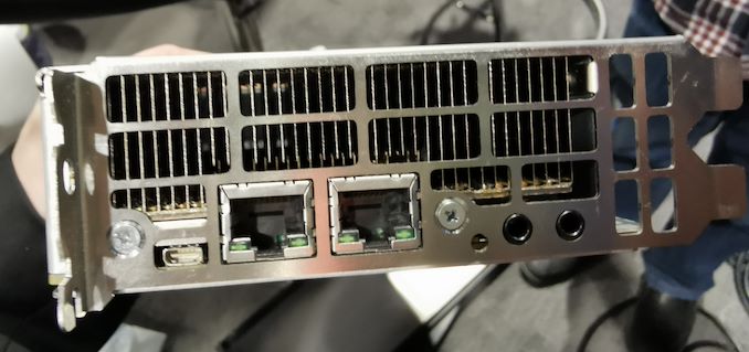 These cards were geared towards the cloud video streaming market, and contained three E3-1585L v5 processors inside with Iris Pro P580 graphics. The card as a whole was rated for 235 W, which includes the switch inside, and through a host you could ssh into the CPUs similar to how Intel made Xeon Phi add-in cards. Intel’s SDK pacakages for the card revolved around AVC transcoding at 30 FPS, as well as a Kernel development kit for CAD applications.