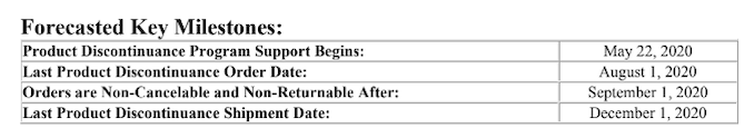 The EOL timeline for the VCA1585LMV starts on May 22nd, with a final order date of August 1st. Orders are non-cancelable after September 1st, and all orders will be shipped by the end of the year. Any orders placed between the final order date and the final shipment date will be filled by any existing inventory. Interestingly enough, Intel also includes this snippet in its product notice that I’ve never seen before: