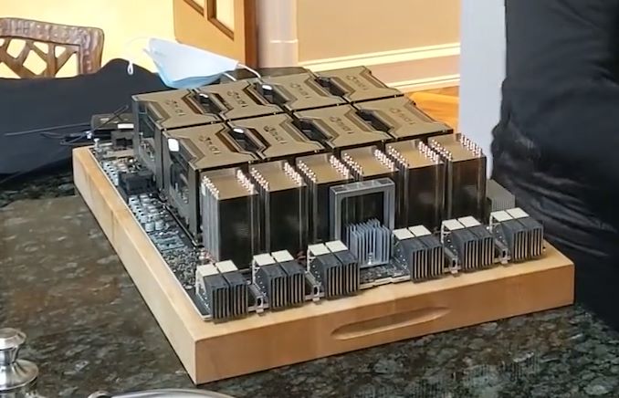 With no other context provided in the 27 second video, the board looks a great deal like an updated version of the baseboards used in NVIDIA’s DGX and HGX compute servers. And with NVIDIA’s next-generation compute architecture and GPU widely expected to be unveiled at the event, we are almost certainly looking at a server board full of NVIDIA’s next-gen accelerators.
