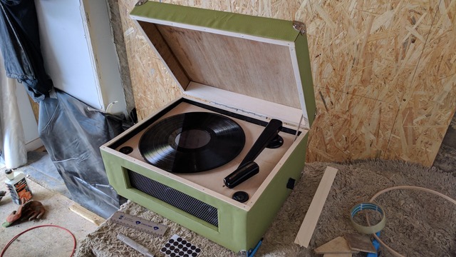 To play and pause music, Ben sourced a tone-arm online and routed cabling from the Raspberry Pi GPIO pins through to a micro-switch where the original needle should sit. That’s how lifting the arm pauses playback, and replacing it resumes the music.