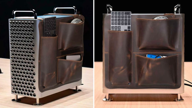 If you’re willing to spend $6,000+ for a properly spec’d Mac Pro, and another $400 to upgrade the tower with wheels, then another $400 is just another drop in a deep bucket to give your new computing workhorse a proper leather saddle. This bizarre accessory doesn’t let you ride the Mac Pro, but it does give you lots…