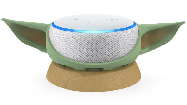 If you’re having trouble feeling connected to the smart speaker that’s emotionlessly listening in on every word you say, there is, of course, a Star Wars-themed product for that. This time around it’s a stand for your Amazon Echo Dot that makes it look like the adorable Child from The Mandalorian.