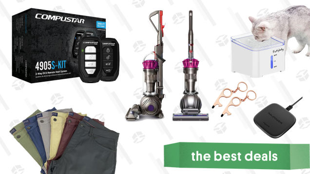 A Compustar remote car starter kit with installation included, a Dyson ball vacuum, JACHS NY Fall Stretch Tech pants, a RAVpower wireless Qi charging pad, a pet drinking water fountain, a door-opening multi-tool, and a Star Wars The Child pin set lead Friday’s best deals.