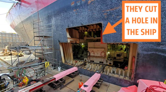 A fire broke out on the United States Coast Guard’s largest ship last summer, destroying one of the vessel’s enormous electric motors. Now the Coast Guard, one of the five service branches of the U.S. military, is replacing that motor and documenting the entire process, which involves cutting a giant hole in the hull.…