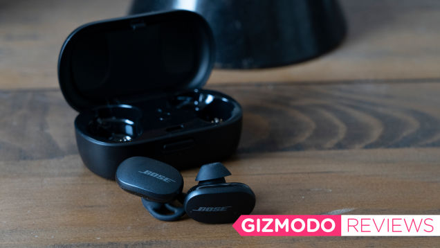 The Bose QuietComfort earbuds slip into my ears relatively easily. They connect to my phone, and the moment they do, that pleasing Bose brand of silence washes over me. I can’t hear the fridge’s compressor or the steady hum of my server—only silence. Then, because the Bose QuietComforts are pretty large, one pops out…