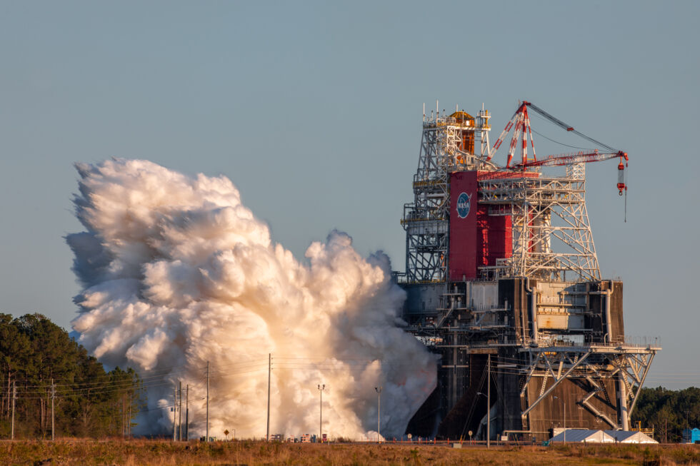 STENNIS SPACE CENTER, Miss.—For a few moments, it seemed like the Space Launch System saga might have a happy ending. Beneath brilliant blue skies late on Saturday afternoon, NASA’s huge rocket roared to life for the very first time. As its four engines lit, and thrummed, thunder rumbled across these Mississippi lowlands. A giant, beautiful plume of white exhaust billowed away from the test stand.