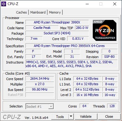 | 3995WX | 64 / 128 | 2700 | 4200 | 128 | 256 MB | 2 TB | $5490 |