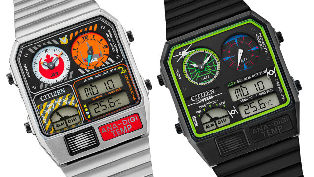 Horologists like Breitling are known for their watches with faces full of complications designed to assist pilots, but Citizen has a pair of new timekeepers that explore what a watch worn by an X-wing or TIE fighter pilot in the Star Wars universe might look like.